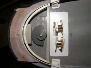 Roerafdekking en lieren Dan is er de roeras die boven door het dek steekt. Hierboven heb ik een afdekking gemaakt van aluminium tranenplaat. Onder deze plaat zit een abs ronde vorm die met de railing meeloopt. Hieraan zitten afstand blokjes met verhogingen en aan de middenachterzijde voorzien van een ingelaten magneetje. Dit magneetje is van neodymium Errrug sterk. Dit geheel zit als het ware op het dek geplakt en kan er eenvoudig, dankzij de magneet, weer vanaf gehaald worden. Onder deze afdekking zit de roeras, doorgestoken door het dek, en hierop zit weer een soort poelie waarop in een verder bouw stadium de ketting gaat lopen die naar de stuurhut gaat. Bij de echte Gar wordt het roer aangedreven door een ketting die over dek loopt. Men heeft dit gedaan omdat deze aandrijving onder dek teveel rommel, denk aan vetten, geeft in deze verblijfsruimte. Ook is er een dek opening gemaakt die aan de voorzijde is afgedekt met de grondplaat voor de lieren zo zie je deze dek opening niet en kun je bij problemen toch makkelijk onder dek bij de roerhevel.Β Op de lier grondplaat zijn een tweetal lieren geplaatst deze heeft Henk gedraaid en Ton heeft er tanden op gemaakt(tandwiel). Alles ziet er geweldig echt uit.