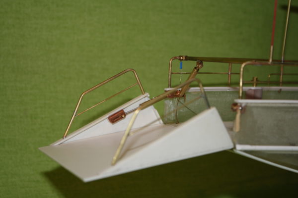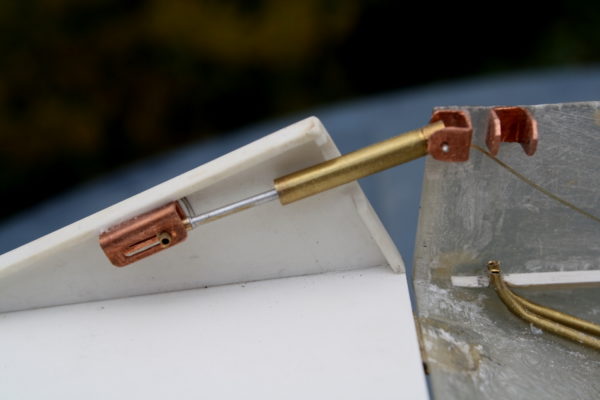 De klep is gemaakt van ABS plaat 1.5 mm, voorzien van scharnieren (sigaren kistje)Β en cilinders. Deze zijn gemaakt van messing; de cilinder van buis rond 4 mm, de zuiger van massief rond 3 mm, de zuigerstang van buis rond 1.5 mm. In de zuigerstang wordt een gevlochten staalkabeltje geplakt met seconden lijm om hem te kunnen bedienen.