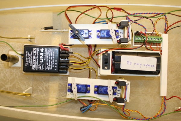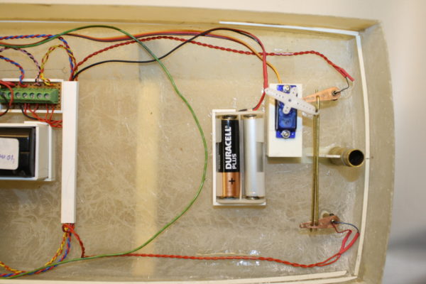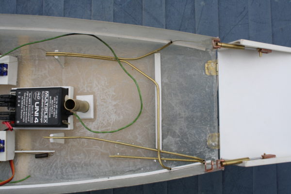 In de romp ligt de elektronica om de pont te kunnen besturen, aan te drijven, de verlichting, klep en slagboom te bedienen. De stuur servo staat onder de kajuit, vlak langs de stuurstang van de azipods, via stangetjes en hefboom met elkaar verbonden. De aandrijving gaat met twee servo’s en micro schakelaars, een voor de rechter en een voor de linker motor. De twee schakelaars zorgen voor een ompoling van de stroom zodat de motor links dan wel rechts om draait, vooruit of achteruit dus. De klep en slagboom worden elk bedient met een servo, door het aan trekken van een kabeltje gaat de klep omhoog, bij het vieren van dit kabeltje zal de klep weer omlaag gaan. De hefboom evenzo.