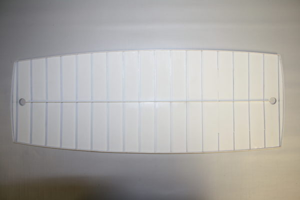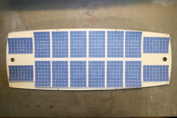 Ook hier weer ABS plaat gebruikt, 1 mm. dik, voorzien van ribben en omranding (Β abs strip 2 x 0.5 mm.)Β ter versteviging. Voor en achter de opening voor de Spud buizen, hierop komt een lier om de Spud palen te kunnen bedienen. Op het dak komen nog zonnepanelen voor de stroom voorziening