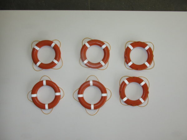 Nadat de reddingsboeien vorm hadden gekregen, zijn ze gelakt en voorzien van reflecterende folie enΒ touwen aan de buitenzijde.