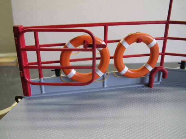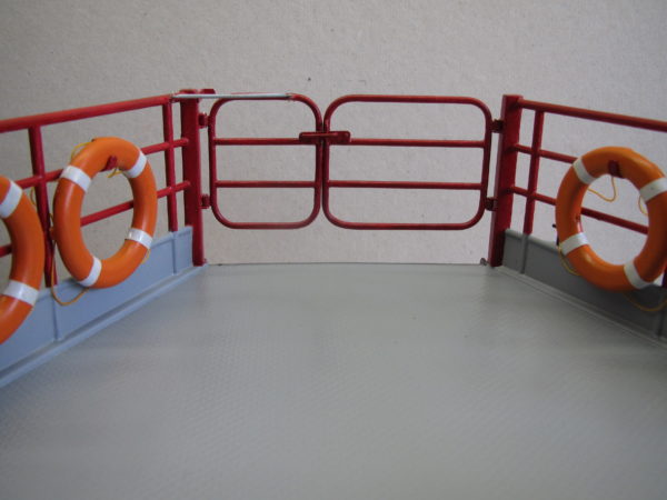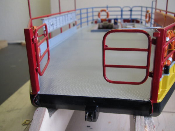 Aan de voorzijde zijn twee poortjes aangebracht. Volgens de kapitein is het de bedoeling dat deze gesloten zijn tijdens de oversteek. Maar dat is zelden of nooit het geval. Die aan bakboordzijde blijft meestal gesloten en de poort aan stuurboordzijde staan altijd open. Mocht er een reden zijn om de voorzijde af te sluiten, dan kan men vanuit de kajuit de klep helemaal rechtop zetten.