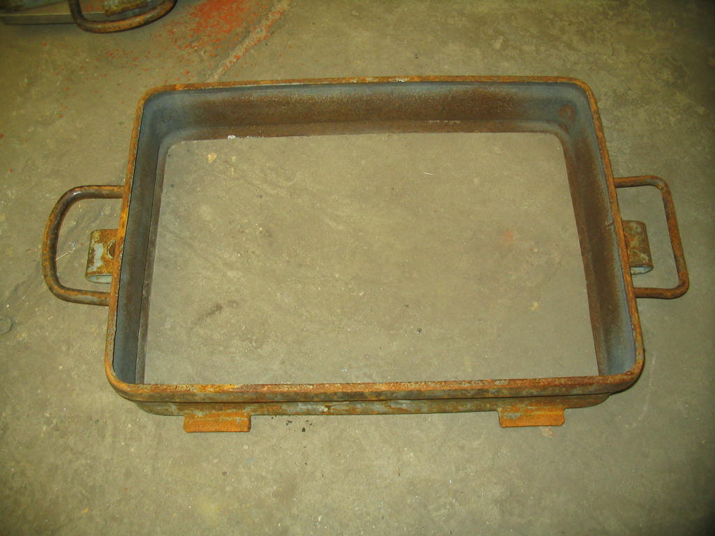 Onderste rij;Â aanzicht op binnenzijde bovenkast, het gietstuk met gietsysteem, de binnenzijde zonder kern, de buitenzijde zonder gietsysteem.Â