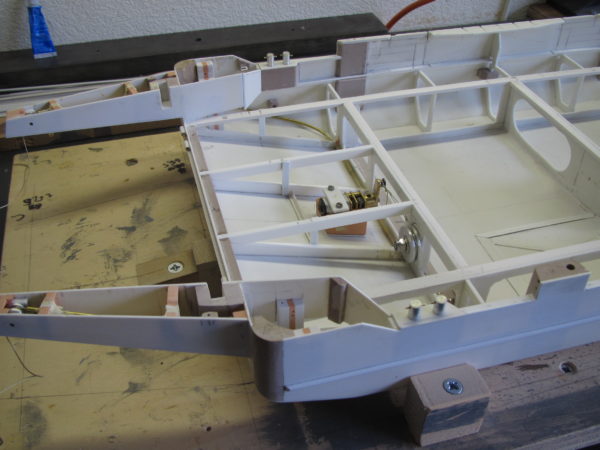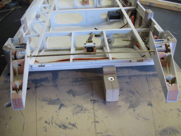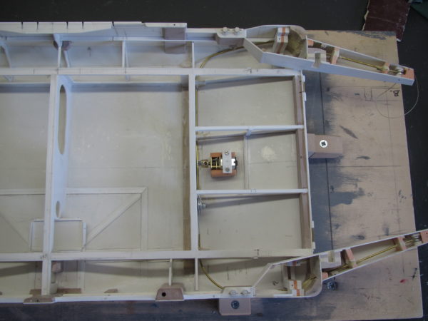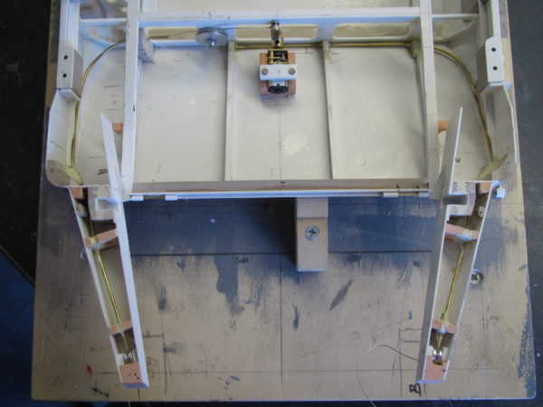 In tegenstelling tot het mechanisme voor de slagbomen, is het hier iets eenvoudiger uit te voeren. Ben in eerste instantie uitgegaan van een motor die de kabeluiteinde oprolt. Maar clubleden waarschuwde mij. Is gemakkelijk maar houdt toch een risico in. Zodra er storing komt of een vergissing bij de bediening, dan heb je kans dat het mechanisme de kabel zo strak aantrekt dat er iets stuk gaat. Repareren in een kleine ruimte is dan vrijwel onmogelijk. Uiteindelijk gekozen voor een motor met een hefboom. Hiermee wordt een draad boven over de poelie gebracht en de andere draad gaat er eerst onder de poelie door en vervolgens met de andere draad samen over de poelie getrokken. Hiermee gaat in geval van storing wel de klep op en neer maar er gaat niets stuk. Dat heb ik uitgeprobeerd en het werkt prima. Moet alleen nog goed afgesteld worden in de eindmontage.